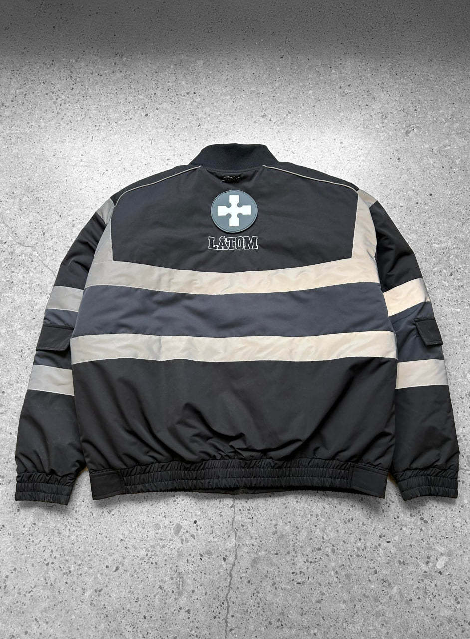 Heavyweight winter insulated jacket with embroideries on the front, back, and sleeves and a rubber patch on the back. This Jacket is made of 100% Polyester. Soft and comfortable, warm and breathable. Reflective lines reflect light and glow in the dark. Comes with backpack straps on the inside.