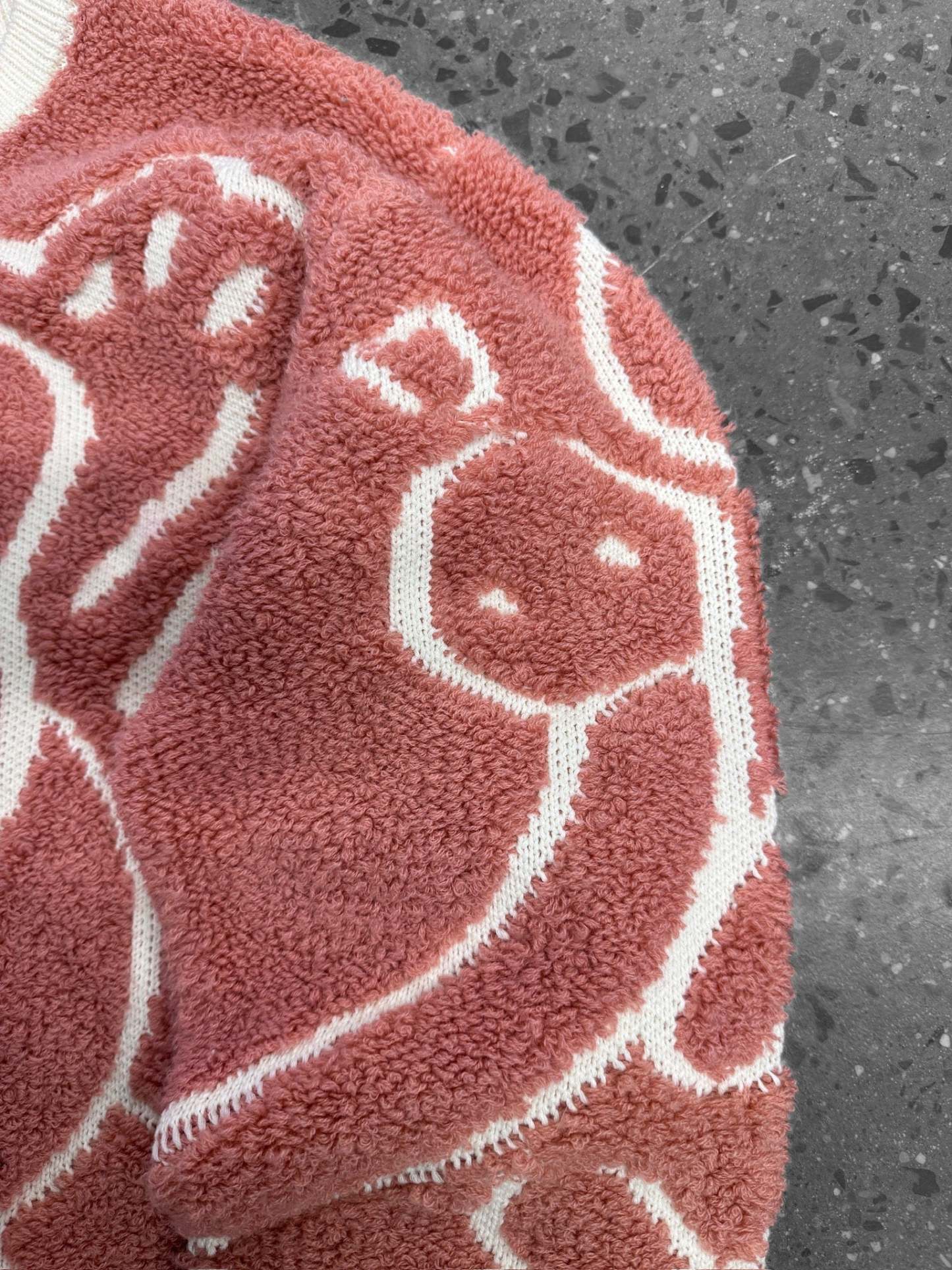 - Embroidered with thick pink thread
