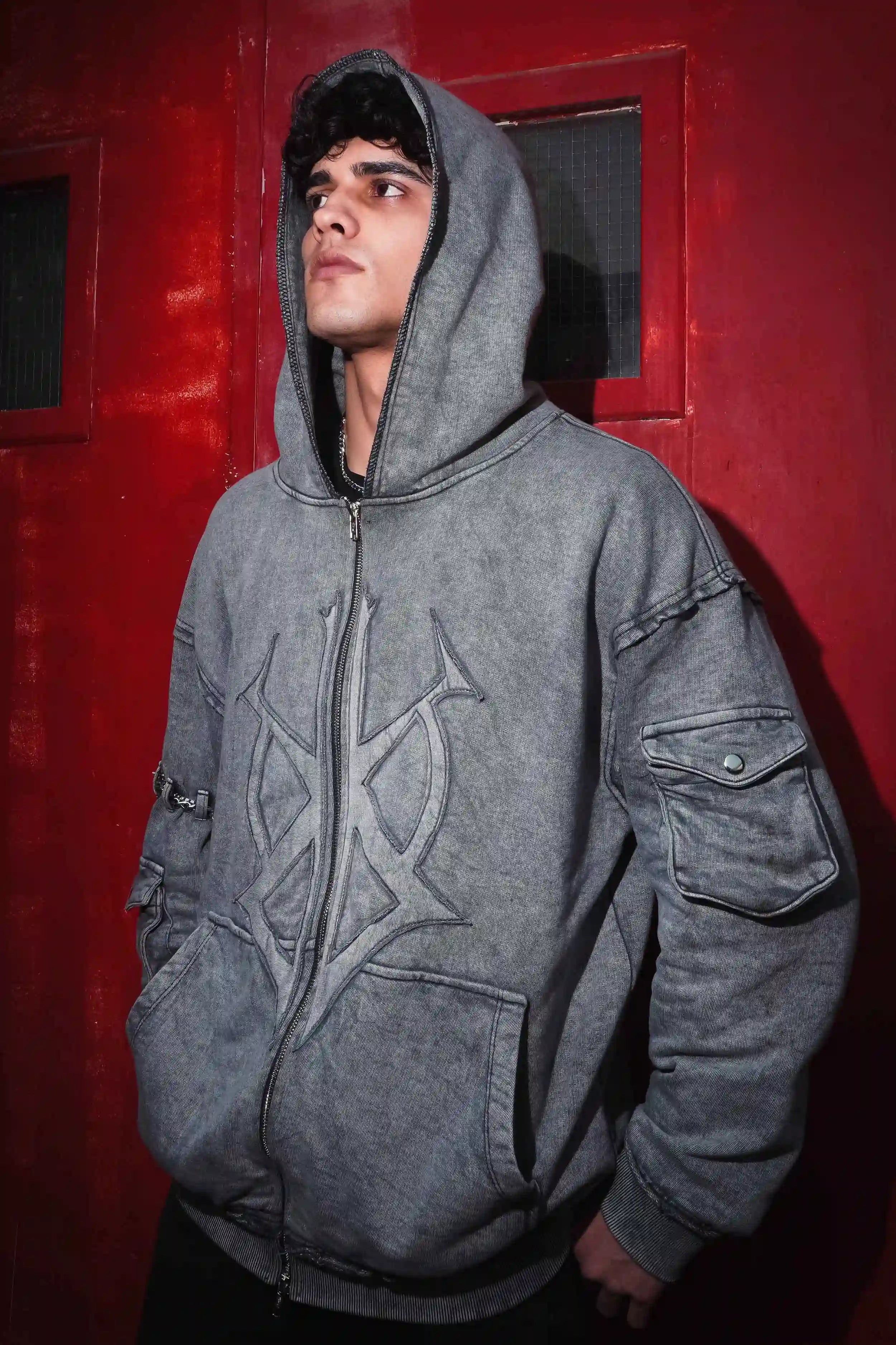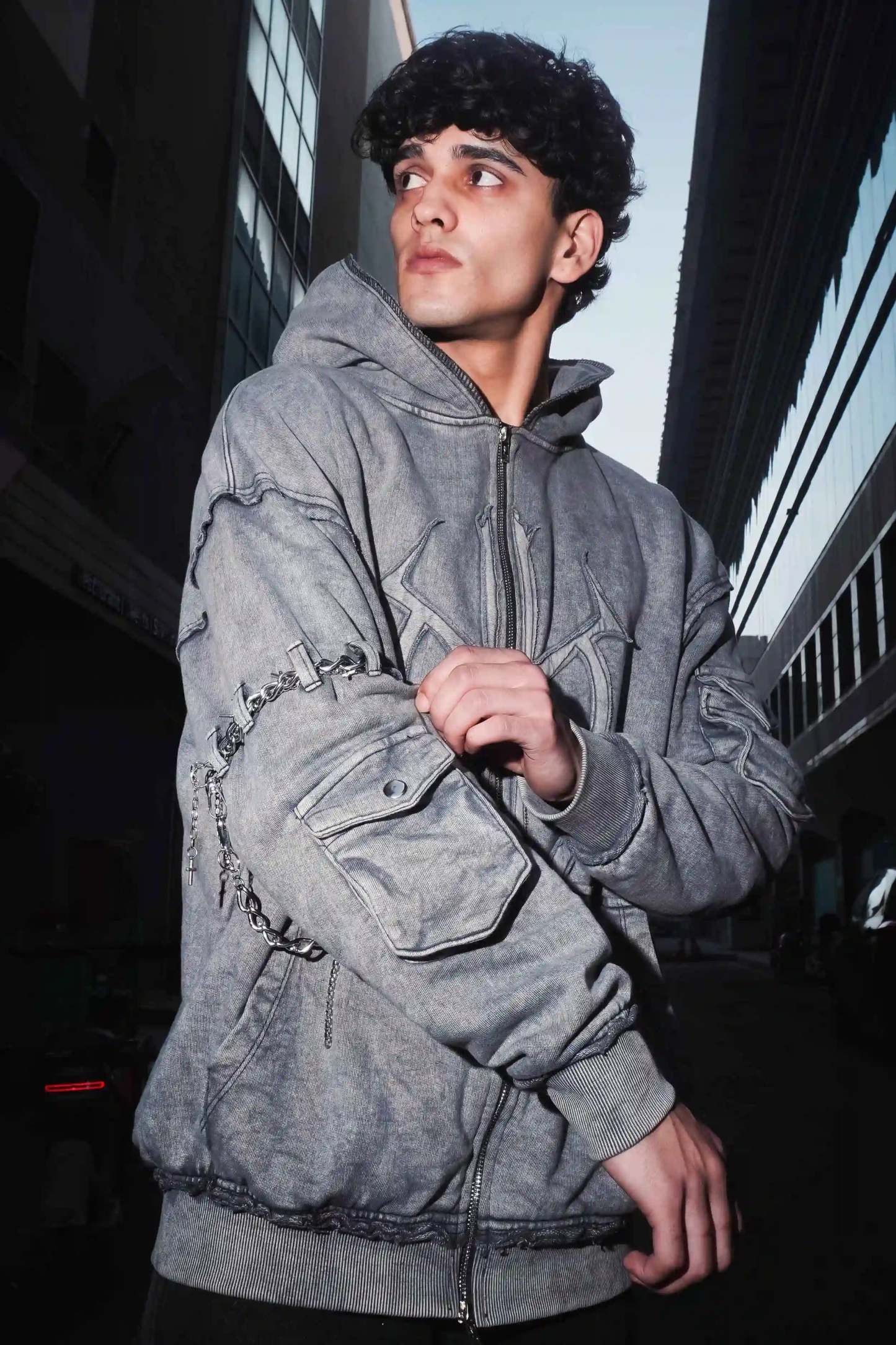(Please note :- Arm chain and sleeves pocket button is not included with the hoodie)