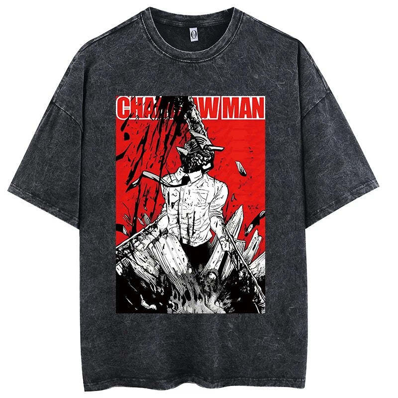 Chainsaw Man Carnage Mode Vintage T-Shirt. Premium 100% cotton tee featuring a bold, vintage-inspired Chainsaw Man graphic. Oversized fit for a relaxed, streetwear look. Soft, breathable fabric. Ribbed crew neck. Double-stitched sleeves and hem. Sizes S-3XL. Machine wash cold, inside out. Perfect forChainsaw Man fans and casual anime style. Durable print stays vibrant. Ideal for everyday wear or cosplay events.