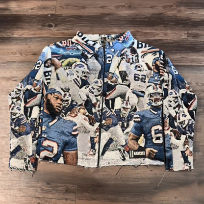 Rugby team print tapestry lapel jacket