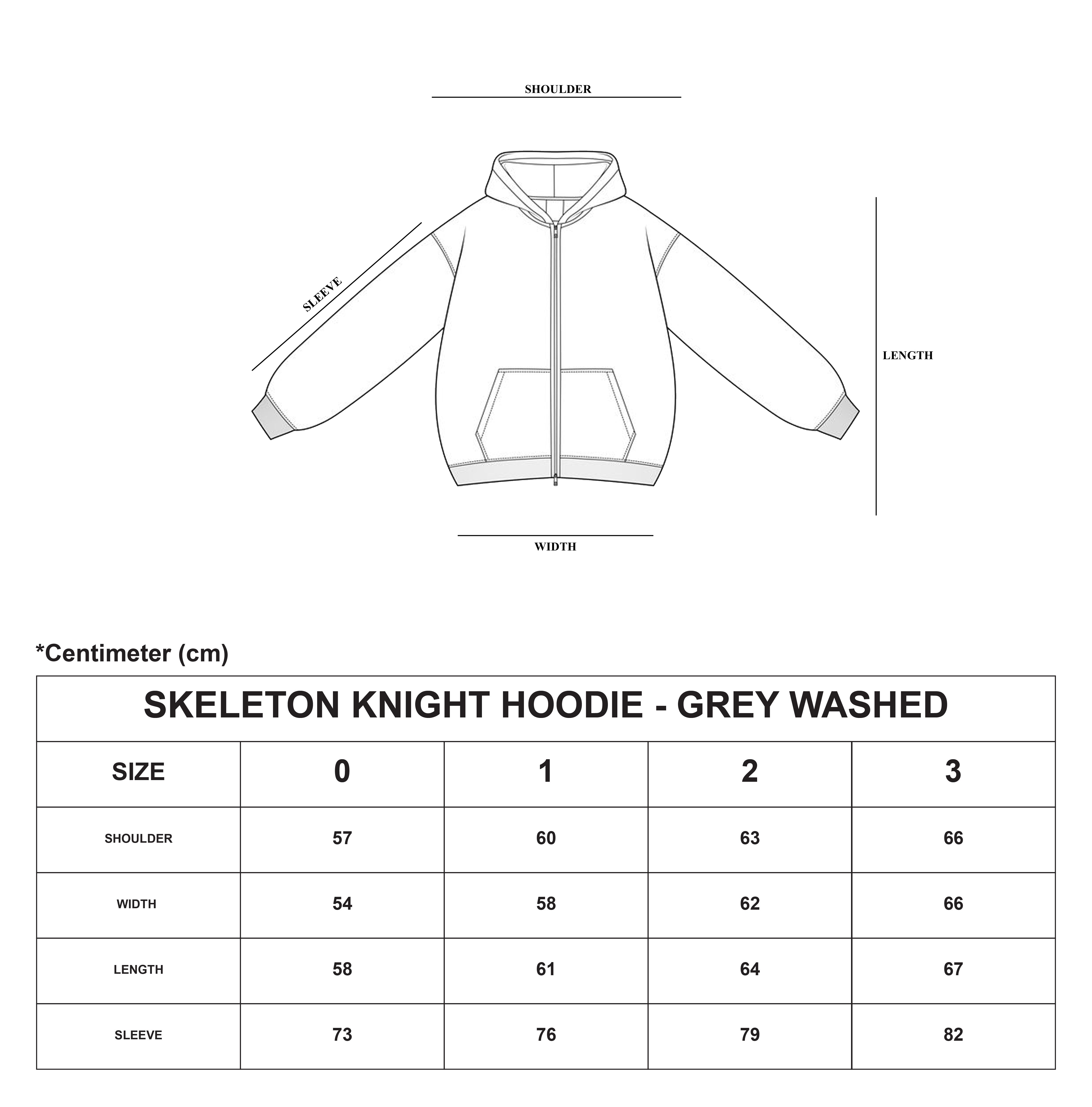 Full-zip hoodie with an inner crusader cross mask lining. Embroidered skeleton lines run across the body and extend into the hood. Naturally moss-washed for a worn, ancient feel.