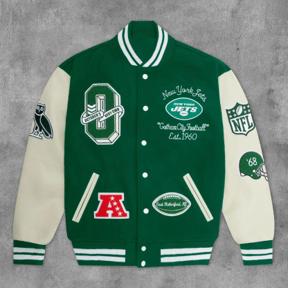 Stylish Jets Print Long Sleeve Baseball Jacket